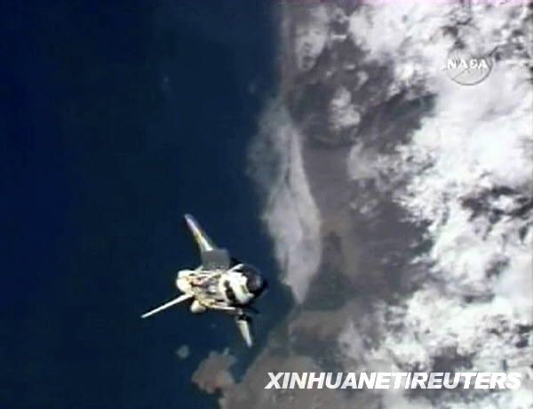 這張美國國家航空和航天局3月17日發(fā)布的電視截圖顯示,美國“發(fā)現(xiàn)”號航天飛機準(zhǔn)備與國際空間站對接。新華社/路透