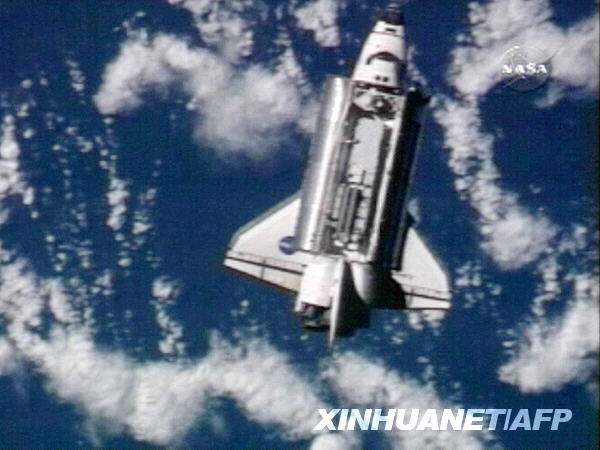 這張美國國家航空和航天局3月17日發(fā)布的電視截圖顯示,美國“發(fā)現(xiàn)”號航天飛機準(zhǔn)備與國際空間站對接。新華社/法新