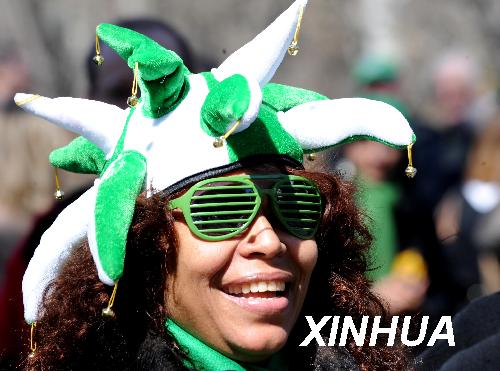 3月17日,在美國(guó)紐約曼哈頓,一位女士觀看圣帕特里克節(jié)游行。當(dāng)日,紐約舉行盛大游行,慶祝圣帕特里克節(jié)。圣帕特里克節(jié)是愛(ài)爾蘭人紀(jì)念?lèi)?ài)爾蘭守護(hù)神圣帕特里克的節(jié)日,至今已有1500多年歷史,這一節(jié)慶傳統(tǒng)被愛(ài)爾蘭移民帶入美國(guó)。新華社記者申宏攝