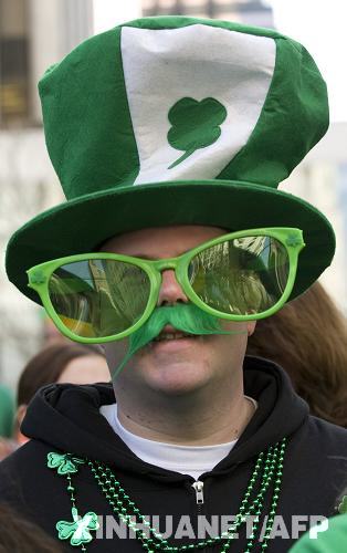3月17日,在美國(guó)紐約,一名男子參加圣帕特里克節(jié)游行。當(dāng)日,紐約舉行盛大游行活動(dòng)慶祝圣帕特里克節(jié)。圣帕特里克節(jié)是愛(ài)爾蘭人紀(jì)念?lèi)?ài)爾蘭守護(hù)神圣帕特里克的節(jié)日,至今已有1500多年歷史,這一節(jié)慶傳統(tǒng)被愛(ài)爾蘭移民帶入美國(guó)。新華社/法新