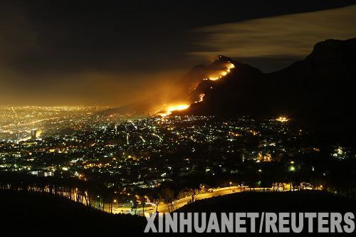 3月18日,南非開普敦一座山上燃起森林大火。大火致使當(dāng)?shù)鼐用駭?shù)百人被迫疏散。新華社/路透