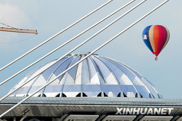 3月19日,一個(gè)馬來西亞旅游宣傳飛艇飛過熱氣球。