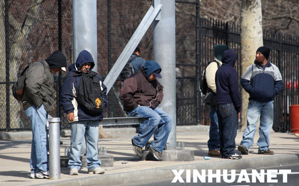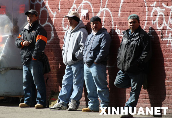 3月25日,幾名失業(yè)者在美國紐約皇后區(qū)街頭等待雇主的雇傭。新華社記者劉欣攝