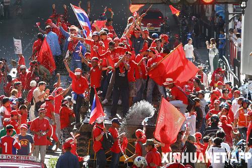 阿披實(shí)宣布曼谷進(jìn)入緊急狀態(tài)后,“紅衫軍”沖入設(shè)在曼谷的內(nèi)政部。