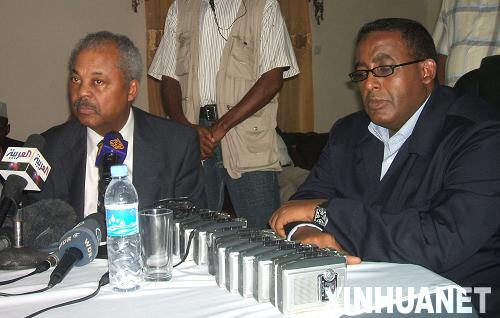 4月13日,美國(guó)民主黨國(guó)會(huì)眾議員唐納德·佩恩(左)在索馬里首都摩加迪沙與索總理奧馬爾·阿卜迪拉希德·阿里·舍馬克出席新聞發(fā)布會(huì)。當(dāng)日,唐納德·佩恩乘坐的飛機(jī)在離開索馬里摩加迪沙機(jī)場(chǎng)時(shí)遭炮彈襲擊,所幸沒(méi)有人員傷亡。新華社發(fā)(阿卜杜勒-拉赫曼·瓦爾薩邁攝)