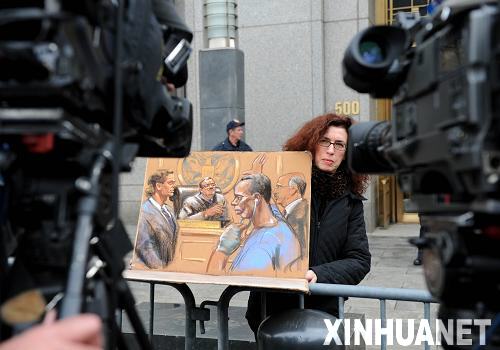 4月21日,在紐約一家聯(lián)邦法院外,一位參加了庭審的藝術(shù)家在庭審結(jié)束后向記者展示她繪制的一幅描繪庭審現(xiàn)場(chǎng)的畫(huà)作。當(dāng)日,被美國(guó)海軍俘獲的索馬里海盜阿卜迪瓦里在紐約一家聯(lián)邦法院出庭受審。據(jù)信,阿卜迪瓦里是一個(gè)世紀(jì)以來(lái)首個(gè)在美國(guó)受審的海盜嫌疑人,如果定罪,他可能被判處終身監(jiān)禁。新華社記者申宏攝