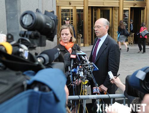 4月21日,在紐約一家聯(lián)邦法院外,索馬里海盜阿卜迪瓦里的兩位辯護(hù)律師接受媒體采訪。當(dāng)日,被美國(guó)海軍俘獲的索馬里海盜阿卜迪瓦里在紐約一家聯(lián)邦法院出庭受審。據(jù)信,阿卜迪瓦里是一個(gè)世紀(jì)以來(lái)首個(gè)在美國(guó)受審的海盜嫌疑人,如果定罪,他可能被判處終身監(jiān)禁。新華社記者申宏攝