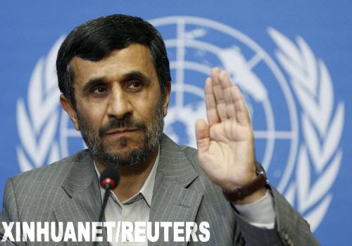 4月20日,在瑞士日內(nèi)瓦,伊朗總統(tǒng)艾哈邁迪-內(nèi)賈德出席聯(lián)合國德班審議會議。艾哈邁迪-內(nèi)賈德當(dāng)日在這里表示,歡迎美國政府作出的改變對伊政策的姿態(tài),但等待美國政策發(fā)生“實際的變化”。 新華社/路透