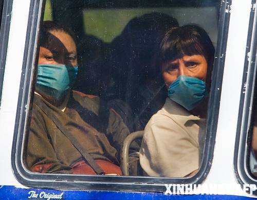 4月27日,在墨西哥首都墨西哥城,兩名戴著口罩的市民向車窗外張望。墨西哥衛(wèi)生部長科爾多瓦當日在新聞發(fā)布會上宣布,墨西哥政府決定從27日開始將停課范圍從原來的疫區(qū)擴大至全國,停課包括大中小學及幼兒園等教學場所,嚴防豬流感疫情蔓延。 新華社/法新
