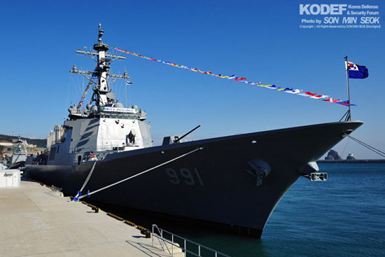 韓國海軍首艘宙斯盾級防空驅(qū)逐艦“文武大王”號 圖片來源:千龍網(wǎng)