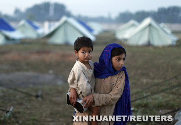5月6日,在巴基斯坦馬爾丹地區(qū)一處由聯(lián)合國難民署設(shè)立的難民營,一名女孩抱著她的姊妹。巴基斯坦政府軍和塔利班武裝日前在巴西北邊境省部分地區(qū)持續(xù)交戰(zhàn)。巴政府計劃從交戰(zhàn)地區(qū)撤離大約50萬平民。新華社/路透