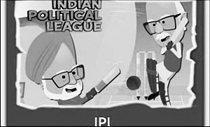 印度網(wǎng)絡(luò)上一款名為“印度政治聯(lián)賽”的游戲借印度板球,展現(xiàn)曼莫漢·辛格(左)和阿德瓦尼之間的“對(duì)抗”。