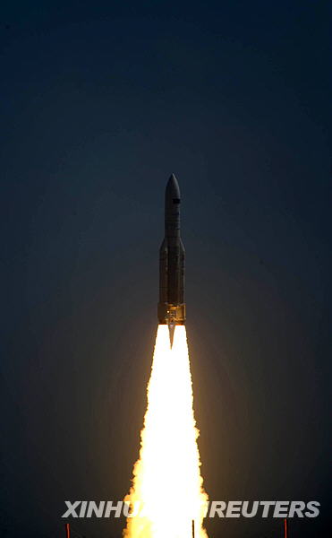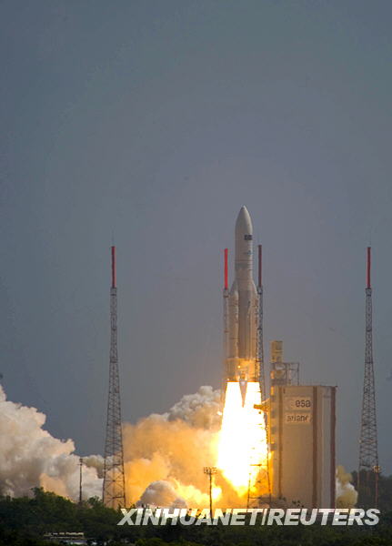新華網(wǎng)巴黎5月14日電(記者 李學(xué)梅)格林尼治時(shí)間14日13時(shí)12分(北京時(shí)間14日21時(shí)12分)歐洲阿麗亞娜5-ECA型火箭攜帶歐航局世界最大遠(yuǎn)紅外線望遠(yuǎn)鏡“赫歇爾”及宇宙輻射探測(cè)器“普朗克”,從法屬圭亞那庫(kù)魯航天中心發(fā)射升空。
