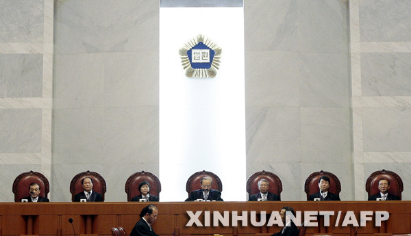 5月21日,在韓國首都首爾,韓國大法院長李容勛(中)對安樂死案作出裁決。