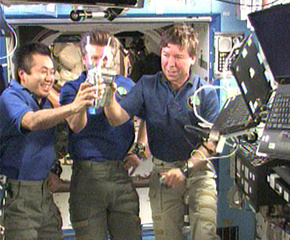 國際空間站宇航員干杯飲用尿液循環(huán)水。