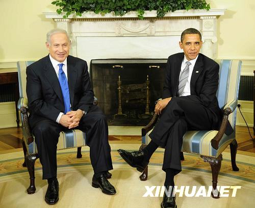 5月18日,美國(guó)總統(tǒng)奧巴馬(右)在首都華盛頓白宮會(huì)見(jiàn)來(lái)訪(fǎng)的以色列總理內(nèi)塔尼亞胡。新華社記者張巖攝
