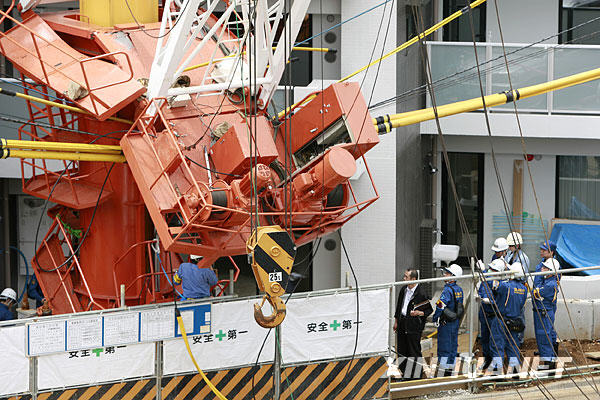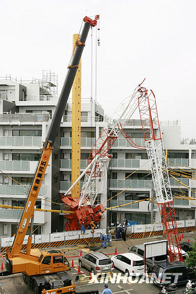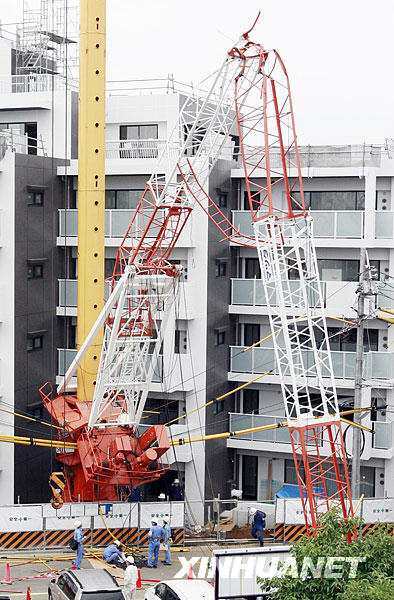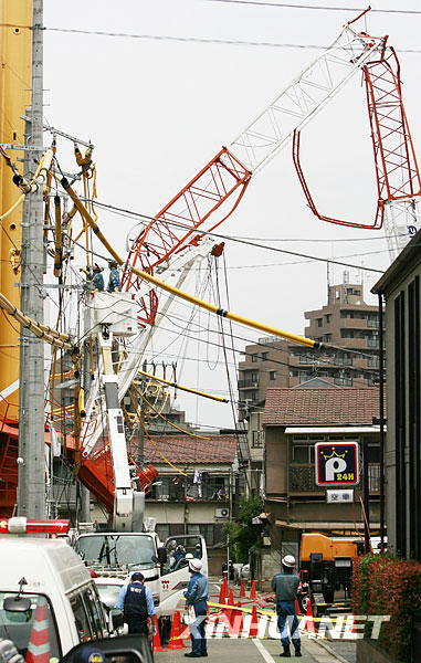 6月3日,日本首都東京板橋區(qū)一棟公寓施工現(xiàn)場發(fā)生起重機(jī)倒塌事故,造成2人受傷,其中一名重傷。重傷的起重機(jī)操作員目前失去意識,心肺功能停止。新華社記者 任正來 攝