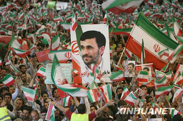6月8日,伊朗現(xiàn)任總統(tǒng)艾哈邁迪-內(nèi)賈德的支持者在首都德黑蘭舉行大型競選集會(huì),支持其在將于6月12日舉行的伊朗總統(tǒng)選舉中爭取連任。新華社記者梁有昶攝