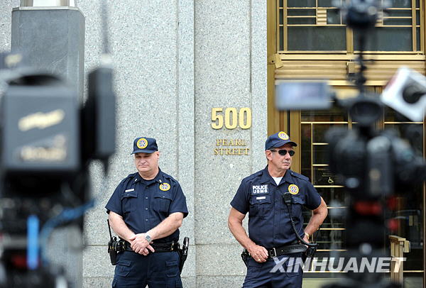 6月9日,兩名警察在紐約南區(qū)法院外警戒。