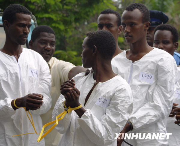 這是肯尼亞本周以來接收的第二批索馬里海盜嫌疑人。8日,瑞典海軍租用一架飛機(jī)將7名嫌疑人從吉布提運(yùn)送至蒙巴薩交給肯尼亞警方。