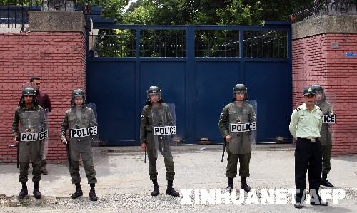 6月28日,伊朗法爾斯通訊社報道說,伊朗安全部門已經(jīng)逮捕了8名與伊朗總統(tǒng)選舉后騷亂有關(guān)的英國駐伊朗大使館當(dāng)?shù)毓蛦T。這是伊朗防暴警察在德黑蘭的英國駐伊朗大使館門外警戒的資料照片(2009年6月15日攝)。 新華社/法新
