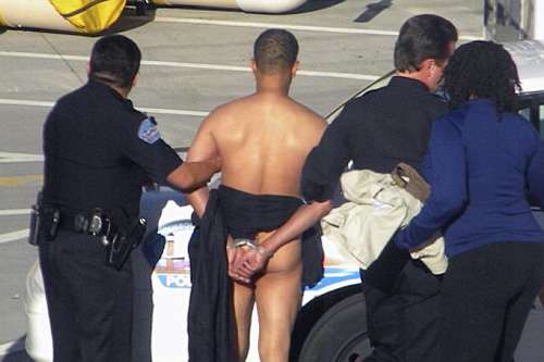 賴特在全裸情況下被押下機
