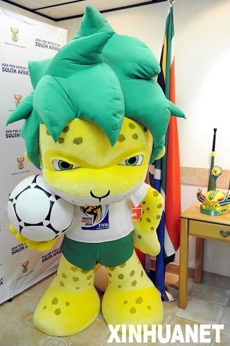 6月29日,世界杯推廣活動上的2010年世界杯吉祥物扎庫米。當日,南非共和國駐香港特別行政區(qū)領事館舉行新聞發(fā)布會宣布,南非政府為慶祝2010年主辦世界杯,將在香港舉行為期一年的推廣活動。新華社記者盧炳輝攝