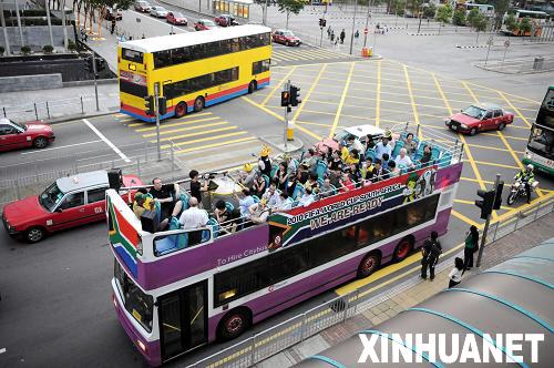6月29日,宣傳巴士在馬路上巡游。當日,南非共和國駐香港特別行政區(qū)領事館舉行巴士巡游,宣傳2010年南非世界杯。新華社記者盧炳輝攝