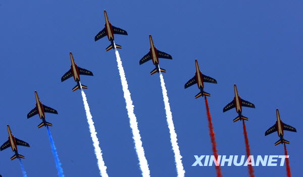 7月14日,在法國首都巴黎舉行的國慶日閱兵式上,法國空軍“法蘭西巡邏兵”進行飛行特技表演。當日是法國國慶日,法國按慣例在巴黎舉行閱兵式等一系列活動進行慶祝。新華社/法新