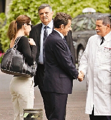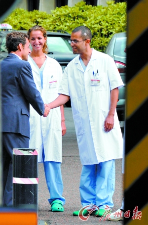 ▲薩科齊出院時與主治醫(yī)生握手告別。