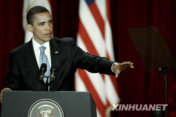 6月4日,美國總統(tǒng)奧巴馬在埃及開羅大學(xué)發(fā)表對伊斯蘭世界的重要講話。新華社記者 張寧 攝