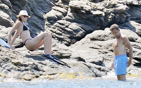 媒體拍到他們?cè)诤_呌斡镜恼掌。這位注重身材的法國(guó)總統(tǒng)站在水中盡力收腹,健康問(wèn)題看似已無(wú)大礙。布呂尼則戴著太陽(yáng)帽和墨鏡,穿著黑色比基尼,大秀身材。他們并沒(méi)有進(jìn)行激烈的運(yùn)動(dòng),有記者只是看到他們?cè)谒谢ハ嘤H吻。(記者 宋華)