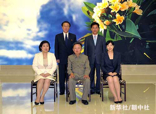 這張朝中社8月16日提供的照片顯示,朝鮮最高領導人金正日(前中)當天會見了正在平壤訪問的韓國現(xiàn)代集團會長玄貞恩(前左)及其一行。新華社/朝中社