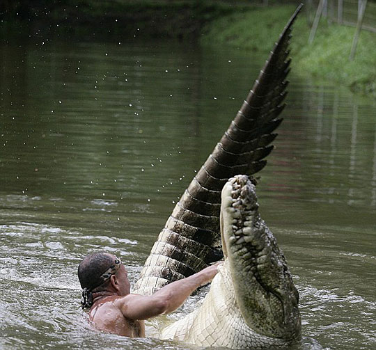 據(jù)英國媒體8月16日報道,除了人被鱷魚吃掉或殺掉鱷魚以外,你還能想象二者之間發(fā)生什么故事么?哥斯達(dá)黎加漁民Chito告訴你,鱷魚還可以成為人的寵物!真是駭人聽聞!但事實(shí)的確如此。20年前,Chito在一個湖里搭救了一條因吞食奶牛而被當(dāng)?shù)剞r(nóng)民射中頭部的鱷魚Pocho。當(dāng)時的它已經(jīng)奄奄一息,好在經(jīng)過Chito的細(xì)心照料,Pocho逐漸恢復(fù)了健康。之后經(jīng)過10年的磨合,Chito和Pocho開始成為了朋友,二者經(jīng)常在一起嬉戲玩耍。如今,大量來自世界各地的游客也紛紛前去見證這一非凡的人鱷情緣。