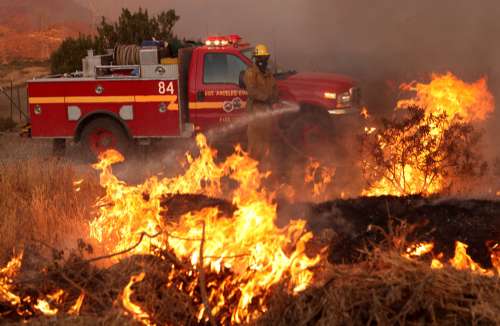 今天的山火已經(jīng)迫近威爾遜山頂,這里是洛杉磯最重要的廣播電視和通信發(fā)射臺所在地,共有二十多個廣播、電視和移動電話發(fā)射架。消防官員告訴當(dāng)?shù)孛襟w記者,失控的山火很可能危急這些設(shè)施。這些廣播通訊設(shè)施一旦失火,將對當(dāng)?shù)卦斐蓢?yán)重影響。此外,山頂一座具有百年歷史的天文臺也備受威脅,該天文臺擁有兩座大型天文望遠(yuǎn)鏡和數(shù)百萬美元的科研設(shè)備。