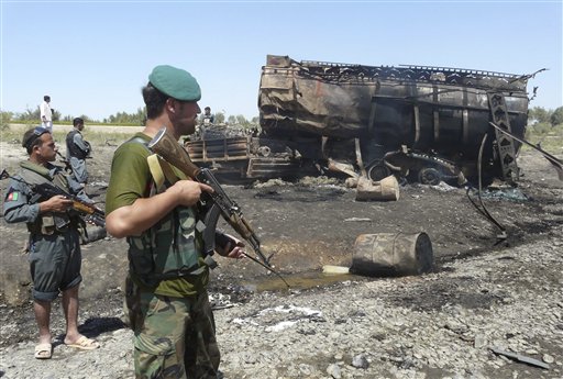 駐阿富汗美軍4日凌晨派出戰(zhàn)機(jī),炸毀了兩部遭塔利班扣押的油料車。爆炸引發(fā)的沖天大火造成90人死亡,其中包括許多前往現(xiàn)場(chǎng)取油的阿富汗平民。(圖片來源:人民網(wǎng))