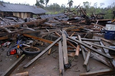 風(fēng)災(zāi)襲擊阿根廷北部,房屋倒塌摩托車被壓。