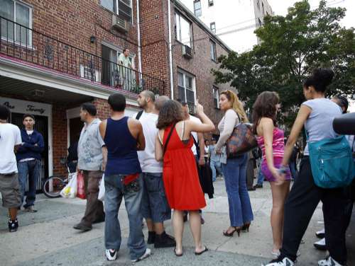 紐約反恐人員突擊搜查皇后區(qū)一幢住宅,位宅內(nèi)的居民在樓外等候。