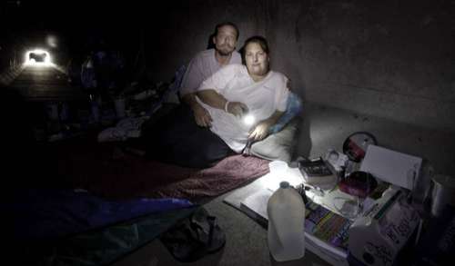 另一對(duì)情侶艾美和JR已做了兩年“隧道人”。他們來賭城是為了找工作和等待發(fā)財(cái)機(jī)會(huì)。他們表示,最大的危險(xiǎn)是洪水和毒蜘蛛。艾美說:“這里比街上涼爽,隧道里有穿堂風(fēng),而警察一般也不來打擾我們。這里很安靜,大家都互相幫忙!