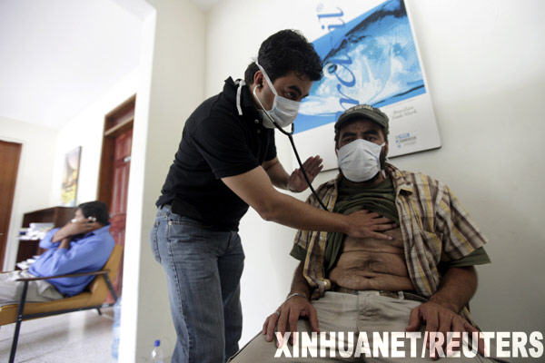 9月25日,在位于特古西加爾巴的巴西駐洪都拉斯使館,醫(yī)生為一名遭罷免的洪都拉斯總統(tǒng)曼努埃爾·塞拉亞的支持者檢查身體。塞拉亞25日譴責(zé)臨時(shí)政府指使軍警人員向他和支持者暫時(shí)棲身的巴西使館施放有毒氣體,導(dǎo)致使館內(nèi)包括巴西外交人員在內(nèi)60余人健康受損。新華社/路透