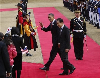 奧巴馬和李明博政府一直對朝鮮施加金融制裁,并告知朝鮮若放棄核計劃則可獲得巨額回報。奧巴馬于上周抵達亞洲,將于今日晚些時候回國。
