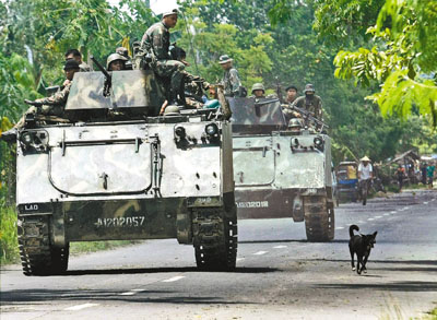 菲律賓南部發(fā)生血腥屠殺慘案。圖為早前菲律賓軍人駛往馬京達(dá)瑙省。