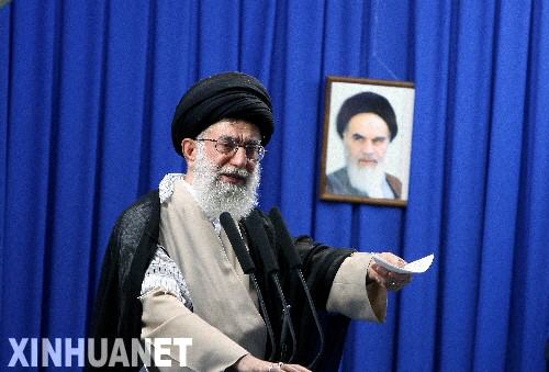 資料圖片:6月19日,伊朗最高領(lǐng)袖哈梅內(nèi)伊在德黑蘭大學(xué)舉行的星期五禮拜集會上發(fā)表講話。哈梅內(nèi)伊當日表示,面對近日因總統(tǒng)選舉引發(fā)的分歧和矛盾,伊朗人民應(yīng)保持團結(jié),通過合法渠道來解決爭議。 新華社/伊朗法爾斯通訊社