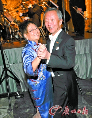 高錕與妻子黃美蕓在慶典舞會上欣然起舞。