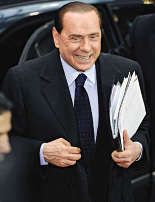 中新網(wǎng)12月14日電 英國媒體消息,意大利總理貝盧斯科尼又在公眾場合“獻丑”了!他十一日在布魯塞爾出席歐盟一個首腦會議時,和與會首腦們分享不同時代女性所穿內(nèi)衣褲的畫作,把首腦們嚇一跳。