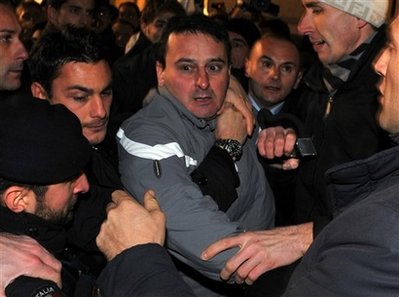 中新網(wǎng)12月15日電 在米蘭大教堂前,以教堂紀(jì)念品模型攻擊意大利總理貝盧斯科尼的男子塔塔利亞,雖然馬上遭警方拘捕,但這個(gè)圓臉、微胖、疑似有精神疾病的大叔,卻一戰(zhàn)成名天下知。