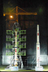 “銀河2號(hào)”模型與“白頭山1號(hào)”運(yùn)載火箭模型并排展出!鞍最^山1號(hào)”曾于1998年8月發(fā)射了朝鮮的第一顆人造衛(wèi)星“光明星1號(hào)”!肮饷餍2號(hào)”的四面被藍(lán)色太陽(yáng)能光板覆蓋,頂部安裝有通信天線。解說(shuō)員向參觀者介紹了發(fā)射情況和意義。