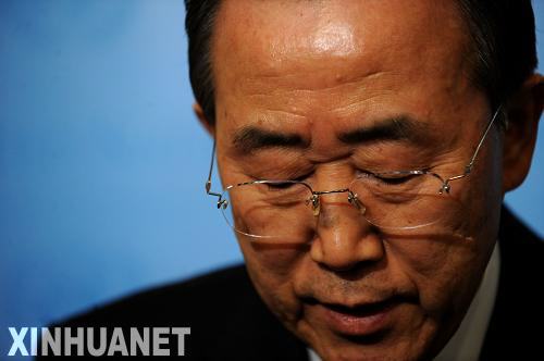 1月13日,聯(lián)合國(guó)秘書長(zhǎng)潘基文在紐約聯(lián)合國(guó)總部向媒體通報(bào)聯(lián)合國(guó)人員在海地地震中的傷亡情況。新華社記者申宏攝