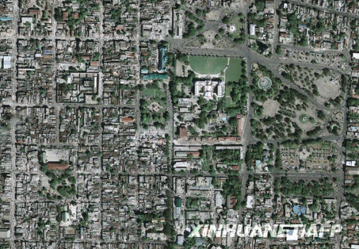 這張1月13日拍攝的衛(wèi)星照片顯示的是地震后的海地首都太子港市中心。海地當(dāng)?shù)貢r間1月12日下午發(fā)生里氏7.3級強烈地震,造成首都太子港大量房屋受損或倒塌,并造成大量人員傷亡。新華社/法新