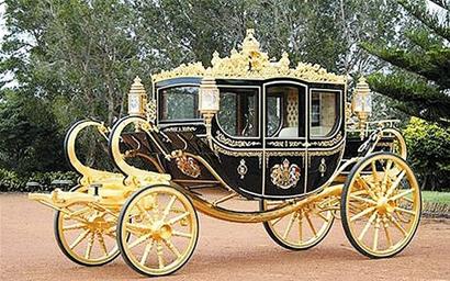 據(jù)報(bào)道,這輛奢華無(wú)比的“黃金婚車”名叫“不列顛尼婭(Brittania)”,由澳洲工匠弗萊.克林頓耗時(shí)6年打造?肆诸D此前為英國(guó)女王伊麗莎白二世制造過(guò)多輛專屬馬車。這輛奢華的“黃金婚車”全車重達(dá)2.5噸,高3米,車身上裝飾有總計(jì)24顆鉆石、130顆藍(lán)寶石和超過(guò)400片金葉。車身上一百多塊木材分別取自倫敦塔、19世紀(jì)英國(guó)海軍名將納爾遜的“勝利號(hào)”戰(zhàn)艦以及16世紀(jì)亨利八世國(guó)王的“瑪麗.羅斯號(hào)”戰(zhàn)艦等重要王室建筑和文物,將是迄今為止英國(guó)最具有歷史意義的車輛之一。